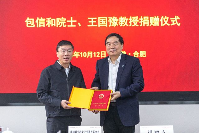 据中国科学技术大学消息,10月12日,包信和院士携夫人王国豫教授向中国科学技术大学捐赠仪式在东区218楼举行。