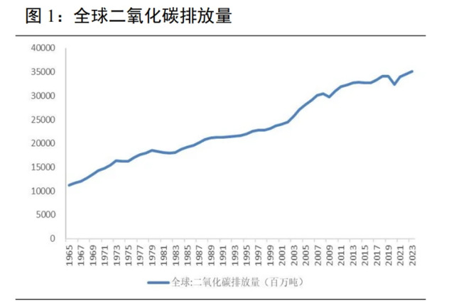 全球二氧化碳排放量继续创出新高。BP 统计的 2022 年二氧化碳排放量为351.30亿吨,较 2021 年增长 1.59%。根据联合国环境规划署《2023 年排放差距报告》,从2021年到2022年, 全球温室气体排放量增加了 1.2%, 达到创纪录的 574 亿吨二氧化碳当量。我国碳排放量居全球之首。根据 BP 公布的各国碳排放数据,2023 年,全球碳排放总量前五的国家分别为:中国(31.90%)、美国(13.20%)、印度(8.00%)、俄罗斯(4.60%)、日本(2.90%),共计约占全球碳排放总量的 60%,而前十的国家共计约占全球碳排放总量的70%。我国自 2005 年成为世界第一大碳排放国。2023 年,我国二氧化碳排放量为112.18 亿吨,在全球占比为 31.90%。