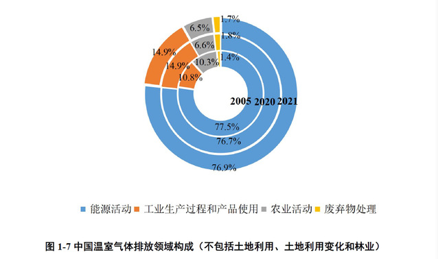 让人意外的是,能源活动为何会占比这么高?这是因为能源工业、制造业和建筑业、交通运输和其他部门的燃料燃烧,全部算在能源活动之中。