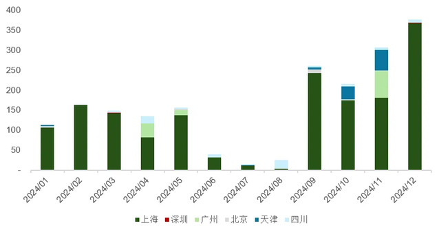 从CCER成交的地域分布上看,2024年市场成交量主要集中于上海环境能源交易所,达1645.38万吨,占全国比重高达84%。广州碳排放权交易中心、天津排放权交易所、四川联合环境交易所和北京绿交所年内CCER成交量分别为116.3、92.2、83.1和22.3万吨,占全国比重5.9%、4.7%、4.2%和1.1%。深圳排放权交易所的成交量则仅为0.5万吨。