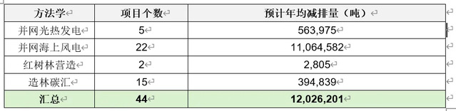 此外,随着2023年10月《温室气体自愿减排交易管理办法(试行)》发布后CCER项目审核重启并发布首批方法学,以及全国统一CCER交易市场启动,根据公开渠道信息梳理,2024年在并网光热发电、并网海上风电、红树林营造、造林碳汇等四个方法学下已有44个CCER项目挂网公示,项目预计年均减排量约1200万吨(表2),若这些项目顺利完成公示并进入全国统一市场交易,将能够有效缓解目前存量CCER被大量消耗,CCER面临的潜在“供不应求”问题。