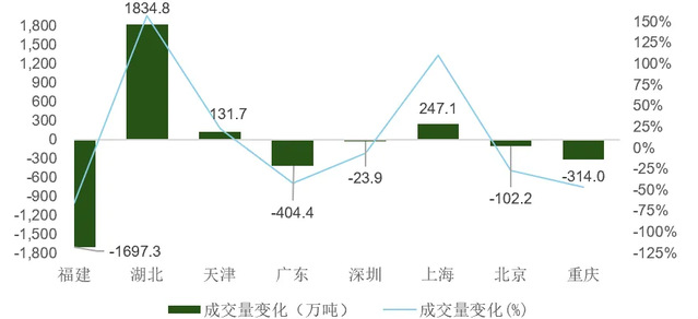图11:地方试点碳市场2023 – 2024年成交量变动情况