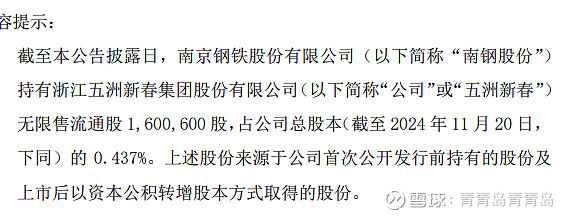 南钢:预计可申报研发费用加计扣除0.81亿元。持五洲新春市值增加0.569亿
