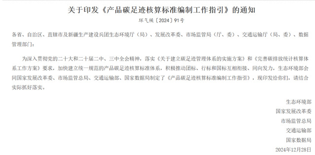 12月,中央经济工作会议重申“建立产品碳足迹管理体系”。