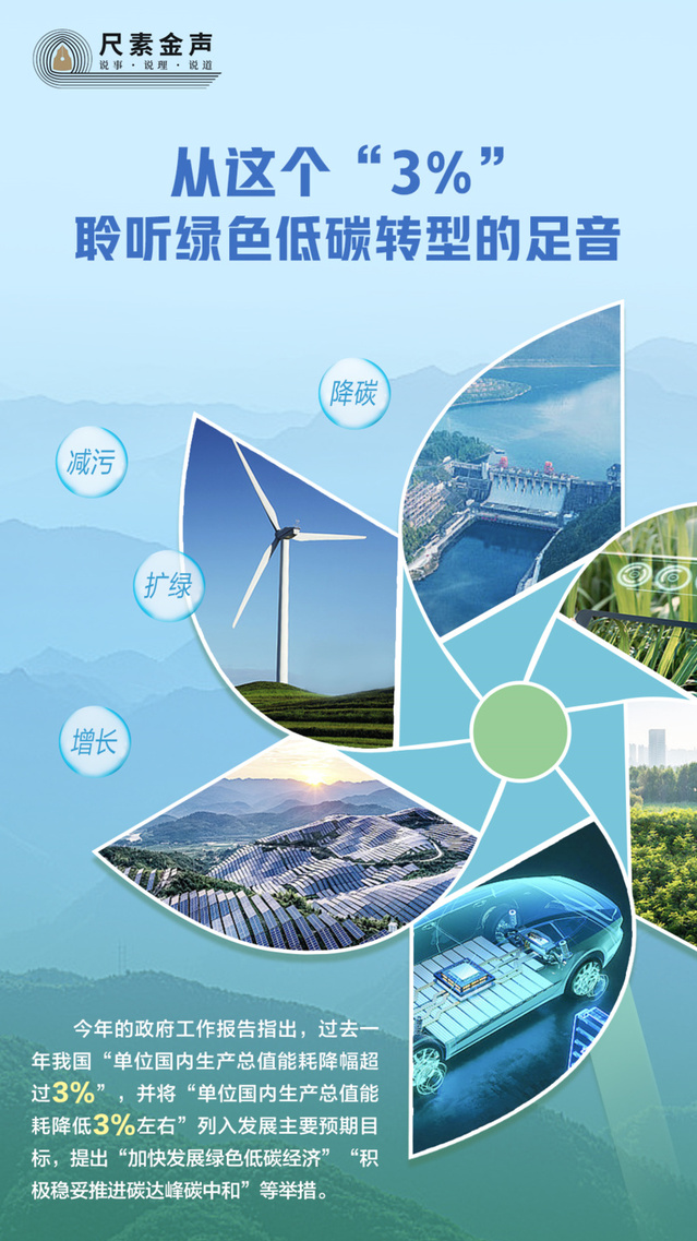 今年的政府工作报告指出,过去一年我国“单位国内生产总值能耗降幅超过3%”,并将“单位国内生产总值能耗降低3%左右”列入发展主要预期目标,提出“加快发展绿色低碳经济”“积极稳妥推进碳达峰碳中和”等举措。