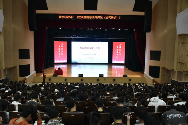 11月2日上午,校党委书记张烈辉在双创大楼学术报告厅为千余名石工院新生讲授了题为“双碳战略与油气开发(油气导论)”的新生研讨课。