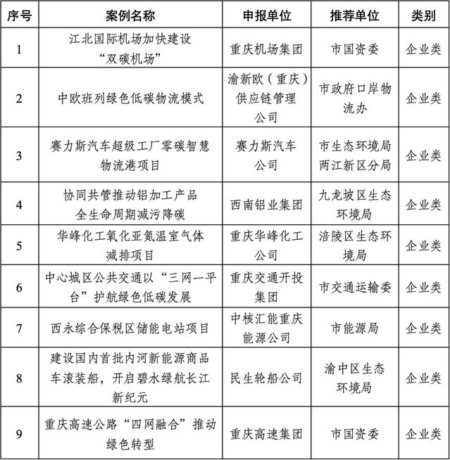 重庆市2024年度绿色低碳典型案例