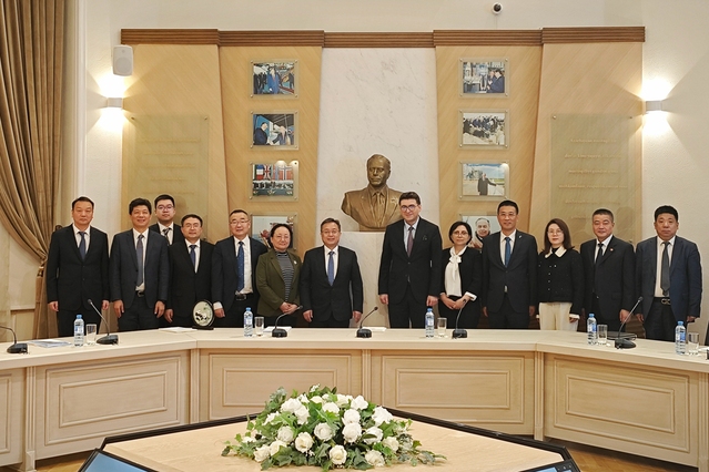 在COP29活动期间,朱晓明、碳研院执行院长蔡亮同苏州代表团一行拜访了中国驻阿塞拜疆经济商务处参赞于宏驰、阿塞拜疆国家能源部副部长奥尔汉并进行会谈。