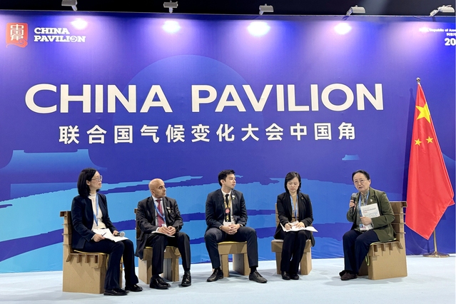 大会期间,主题为“积极防范气候风险,建设低碳韧性城市”的边会在中国角举行。来自中国、阿联酋、澳大利亚等国的多位城市代表分享了建设低碳城市和气候适应城市的经验。碳研院院长朱晓明受邀参会,并发布了《中国城市碳中和发展报告-2024“双碳”路上的苏州行动》报告。该报告基于对苏州市的研究分析,提出“在发展中推动碳减排、在转型中落实碳达峰、在创新中实现碳中和”的可行方案,并在会上向各方呼吁双零(零碳、零废)城市建设倡议。报告是在能源基金会的支持下,从强化战略谋划、推进能源绿色转型、构建绿色产业体系、打造零碳园区、建设韧性城市、振兴自然乡村、推进减污降碳协同、提升治理能力、拥抱全球可持续未来等角度,通过39个绿色案例展现了近年来苏州践行绿色发展理念,以实际行动助力实现国家自主贡献目标的生动故事。