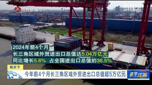 今年前4个月,长三角区域外贸进出口总值达5.04万亿元,规模创历史新高,同比增长5.6%,占全国进出口总值的36.5%。其中,对共建“一带一路”国家进出口2.26万亿元,同比增长7.6%,占同期全国对共建“一带一路”国家进出口总值的34.5%;对RCEP其他成员国进出口1.55万亿元,同比增长4.1%,占同期全国对RCEP其他成员国进出口总值的37.1%;对其他金砖国家进出口0.67万亿元,同比增长12.7%,占同期全国对其他金砖国家进出口总值的33.9%。