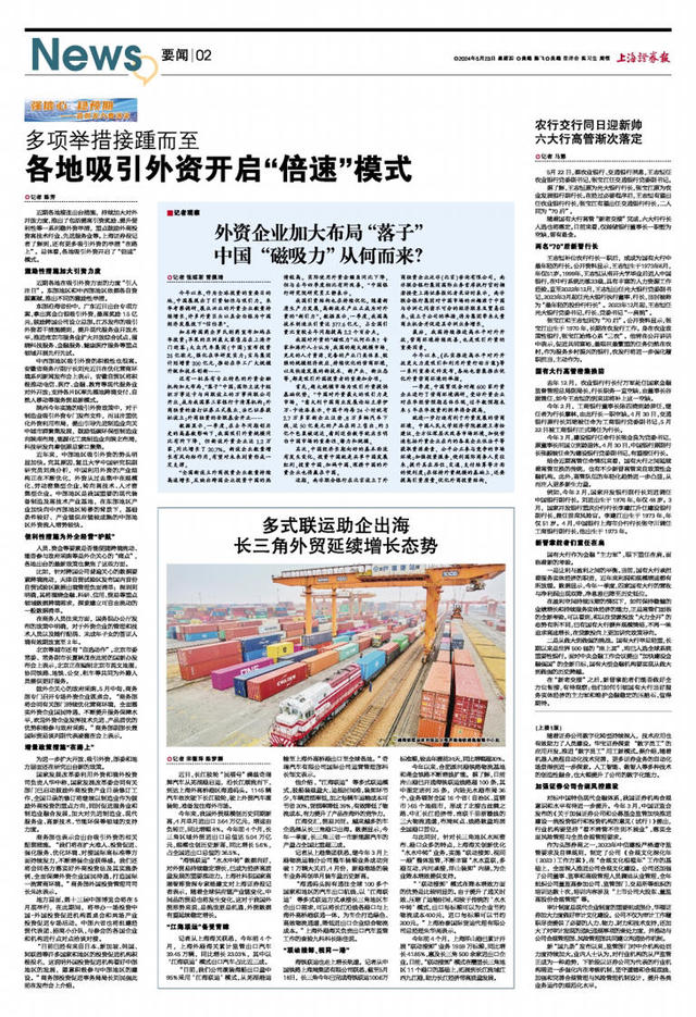 与此同时,针对长三角地区水网密布、港口众多的特点,上海海关创新优化“水水中转”业务,实施“联动接卸、视同一港”整体监管,不断丰富“水水直联,多港互动,内河承接,洋山装卸”内涵,为企业降本增效提供支持。