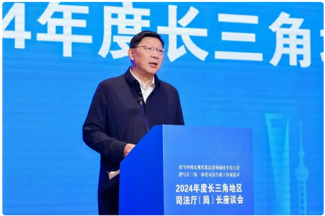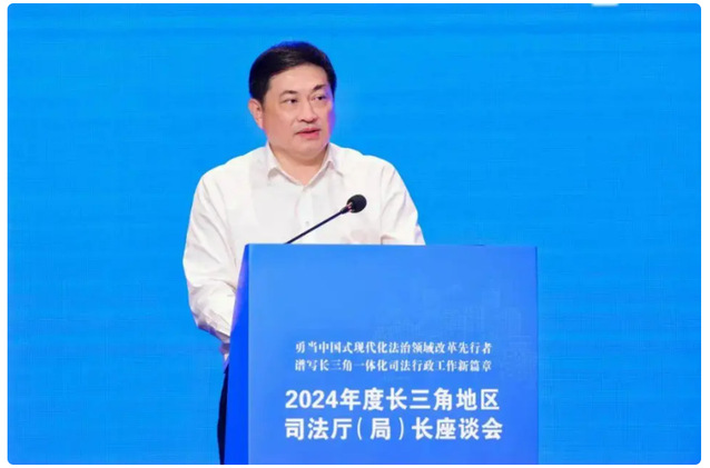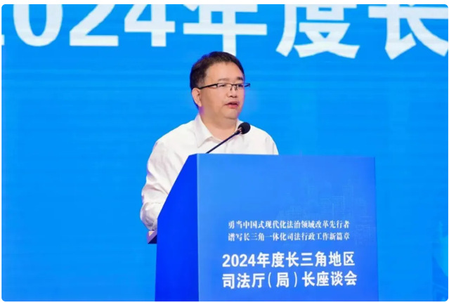 浙江省司法厅党委书记、厅长王中毅强调,要深刻认识法治是中国式现代化的重要保障,是护航长三角一体化发展的重要力量,进一步强化三省一市司法行政部门合作,为深化法治领域改革写下生动脚注。要聚焦统一大市场,携手共创协同开放长三角。持续以制度规则统一促进市场公平竞争、以涉企执法改革促进市场高效规范、以涉外法治建设促进市场充分开放,探索更多改革切入点、发力点,为建设区域一体化大市场奠定良好法治基础。聚焦法治大场景,携手共促一体联动长三角。积极探索区域立法协同模式创新,加强政府年度立法计划编制沟通常态化;健全完善区域规范性文件协作机制,助推政府依法决策;持续深化律师、公证、仲裁、司法鉴定和调解协作,加快推动区域公共法律服务协同发展、便利共享。聚焦风险大防控,携手共建安全稳定长三角。依托长三角法治文化共建共享联盟,共同培育长三角法治文化品牌,下好法治社会基础性建设“先手棋”。积极探索建立长三角区域商事调解示范规则,推动更多法治力量向引导和疏导端发力,下好矛盾纠纷跨区域化解“组合棋”。推动建立长三角区域罪犯刑满释放衔接协调机制,积极提升区域安全发展能力,努力实现高质量发展和高水平安全良性互动。