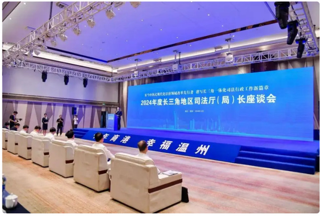 10月16日至17日,2024年度长三角地区司法厅(局)长座谈会在浙江温州召开。上海市司法局局长吴坚勇、江苏省司法厅厅长张晓伟、浙江省司法厅厅长王中毅、安徽省司法厅厅长罗建华出席会议。司法部法治调研局副局长刘大伟,温州市委副书记、政法委书记、依法治市办主任张加波出席会议并致辞。
