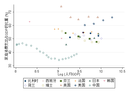 图2 家庭消费份额的跨国比较