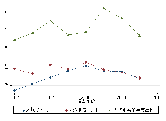 图4历年大小城市的收入、消费比数据来源:根据2002-2009年《城镇住户调查统计》计算(UHS2002-2009)。