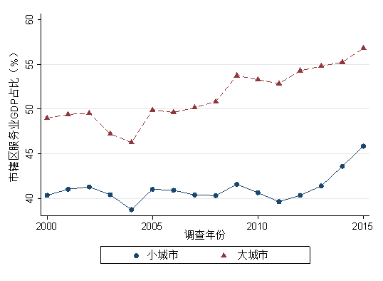 图3城市规模与服务业GDP占比数据来源:2001-2016年《中国城市统计年鉴》,2010年人口普查数据。