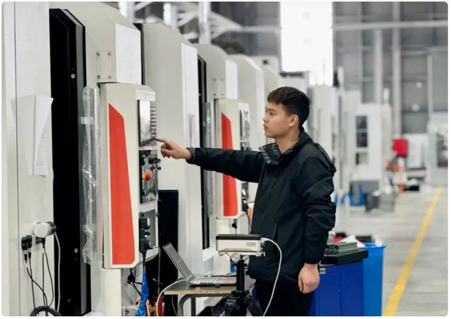 位于长三角(宣城)产业合作区宣州片区的安徽新钽泽数控机床有限公司内,工人们正在调试生产设备。全媒体记者 顾维林 摄