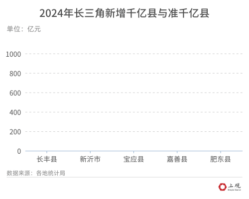 目前,长三角还有一些“准千亿县”城市,比如江苏扬州的宝应县、浙江嘉兴的嘉善县、安徽合肥的肥东县等地,2024年GDP均达900亿元以上。其中,2024年宝应GDP为980.87亿元,距离千亿仅差临门一脚;嘉善2024年GDP突破950亿元,今年1月嘉善县委全会亮出新年目标——全力成为GDP千亿县;同年,肥东GDP为922.5亿元,今年1月,肥东县十八届人大四次会议提出,2025年,全县上下将昂首阔步迈入千亿之城。