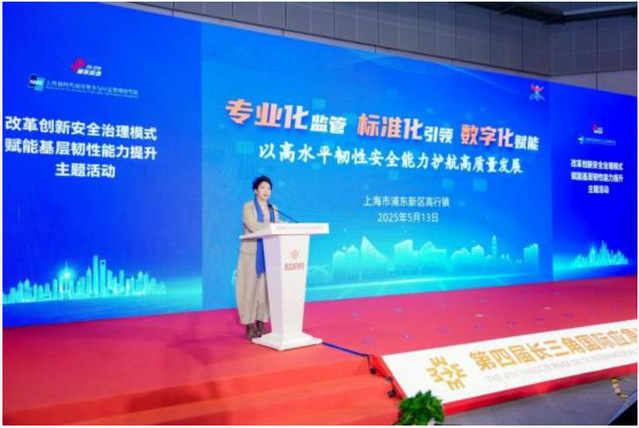 浦东新区高行镇党委书记祝海红在《专业化监管标准化引领 数字化赋能——提升城市韧性安全水平护航高质量发展》发言中,介绍高行镇通过专项整治与闭环管理强化安全防护,编制“八图八表”完善应急机制,依托“一网统管”实现智慧化安全治理等举措,全面推进韧性安全城市建设的实践探索。