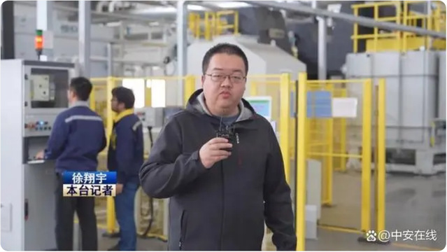 我现在是在泉峰汽车精密技术(安徽)有限公司的热处理车间,在我身后是企业投资3500万元建设的、目前安徽省内唯一的一条数字化低压渗碳连续产线,主要用于新能源汽车零部件的热处理工艺。