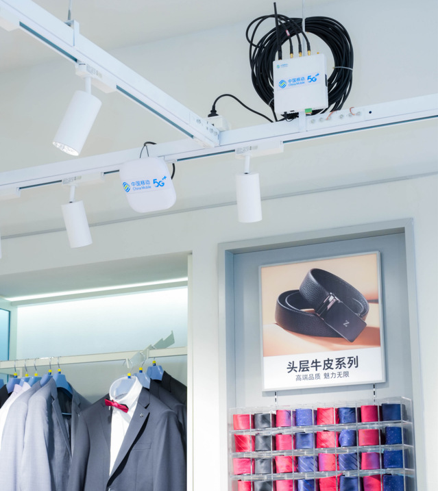 “5G+AI”同样变革服装零售流程。记者走进海澜之家总部门店,货架上各式品类的男装陈列有序。海澜门店信息部相关负责人俞凯指引记者抬头关注到了分布在门店各个位置的移动收发器和天线,“现在我们只需要这些节点设备定时无线读取其覆盖范围内所有服装的‘身份信息’,我们就可以实时获得任何想要的信息,包括品类、货号及服装的具体位置等。”俞凯所说的“身份信息”来源于每件衣服上看似十分寻常的条形码卡片,每张卡片都植入了对应芯片,它们与收发器远程联动,才使得整个卖场内的所有商品实现货架级定位。