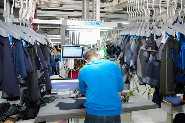 在宁波春禾时装制衣工厂,一条“空中走廊”串联起服装生产的上百道工序。这一中国移动打造的全宁波首个生产流水线吊挂管理MES系统,把所有物料运输流程通过预设的工序工段上移到了头顶,减少了物料搬运、捆扎、传送的人力成本,“行云流水”的精细化流程运作让生产效率提升25%。