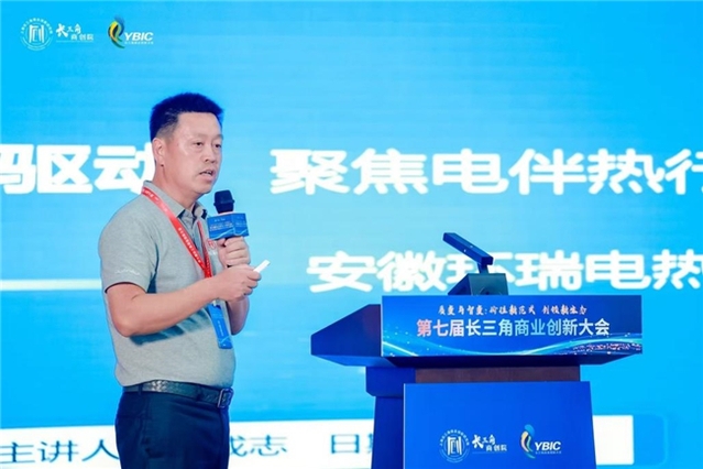 安徽环瑞电热器材有限公司董事长计成志以《创新驱动,温暖世界》为题分享展示了公司在电热领域的技术突破,成功打破国外对高分子电伴热材料的封锁。
