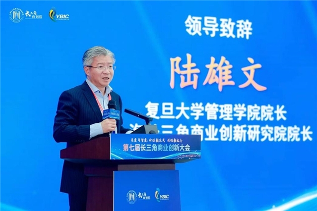 复旦大学管理学院院长、商创院院长陆雄文指出:"产业升级需从资源依赖转向技术创新与生态协同,人工智能、绿色科技等颠覆性技术正重塑商业逻辑。他呼吁企业超越传统竞争,通过融通创新、全球协作实现可持续发展,并分享了长三角地区大中小企业、科研机构与政府多方协同的生动案例。他表示,商创院聚焦民营企业的科技创新,将其转化为新质生产力,以上海为中心的长三角资源禀赋为支撑,推动中国在全球竞争中突围。同时商创院将持续搭建产学研合作平台,推动前瞻性研究,助力构建可复制的创新生态体系,为中国式现代化注入新动能。
