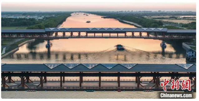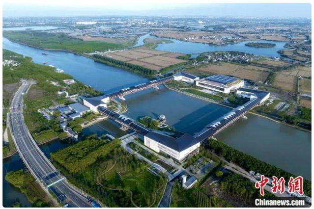 中新社浙江嘉兴7月8日电 沪苏浙交界处,太浦河西接太湖、东临黄浦江,串联起上海青浦区、苏州吴江区、嘉兴嘉善县三地。河上,一座四合院式的建筑横跨两岸——中国首个跨省域房建项目方厅水院,已于不久前正式投用。