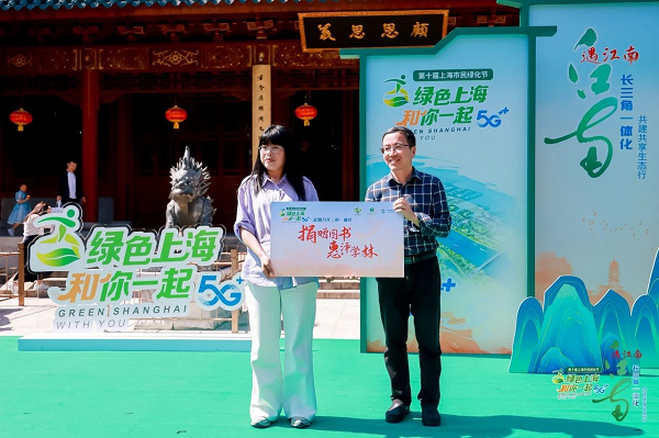 活动当天正值“5·17世界电信和信息社会日”和2024年节能宣传周。由花卉绿植、松木板、江南扇等元素构成的“江南绿”互动区内,上海移动青浦分公司志愿者们生动展示了公司以5G、AI等新技术助力新质生产力培育和长三角区域绿色可持续发展的典型实践,还与大学生和市民们进行了“盘点你的碳排放”科普互动,积极传递绿色低碳生活理念。