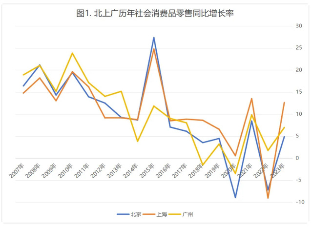高收入高消费水平的城市社零恢复缓慢甚至今年偶尔出现负增长,是近年全国都存在的情况,在第二季度已经较为明显,第三季度进一步加强。回顾北上广三城市的往年消费,由于疫情期间导致了社零数据较大波动(图1),一线城市还处于逐渐恢复消费的时期。2023年数据较好,拉高了基数,因此2024年要保持2023年的增速则比较困难。