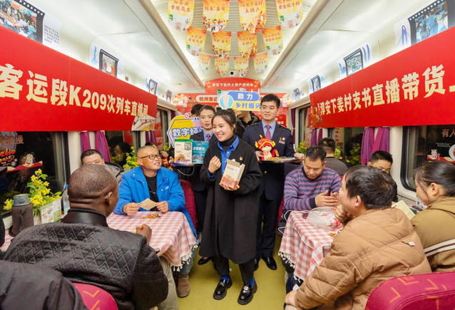杭州客运段在列车上开展了农产品推介活动。周围 摄