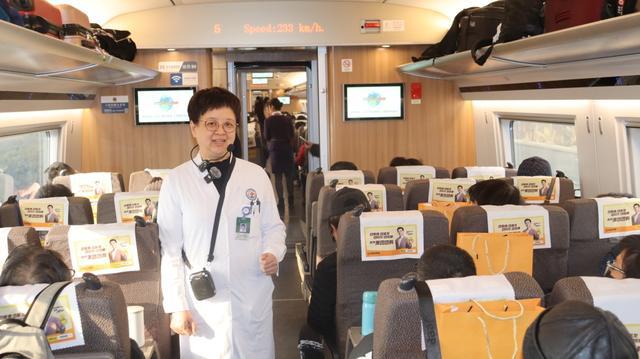 值得一提的是,担当值乘任务的上海客运段邀请长征医院资深医师在车上提供健康宣传和咨询服务,并在车上备足常用药品,获得银发游客的赞赏。