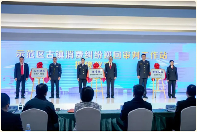 活动向正式组建的示范区“消费纠纷多元化解专家团”颁发了聘书,三地专家团代表围绕消费维权方面作交流分享;现场,“示范区古镇消费纠纷巡回审判工作站”正式揭牌,并向“示范区古镇放心消费联盟”发起单位颁牌,“示范区古镇放心消费联盟”也正式点亮,朱家角古镇旅游公司代表三地五个古镇发起放心消费倡议。