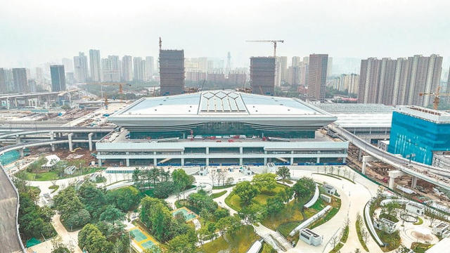 6月13日拍摄的正在加紧建设中的合肥西站。该站是国家“八纵八横”高速铁路网主要客运站之一,对于合肥都市圈提质升级和长三角一体化高质量发展具有重要意义。
