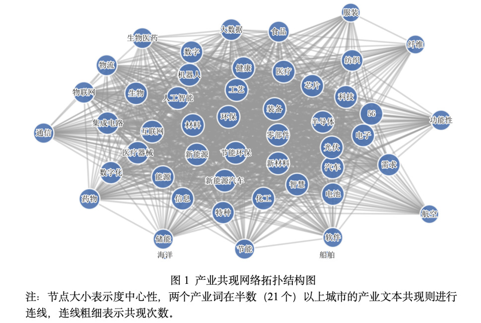 在长三角科创一体化深入推进的背景下,区域产业布局的协同性备受关注。本文构建了覆盖长三角41个地级及以上城市的“十四五”产业规划语料库,通过BM25算法与社会网络分析(Social Network Analysis,SNA)技术,呈现了区域产业规划的热门词与产业共词网络。发现长三角城市群在重点赛道选择上呈现出高度的战略一致性,重点产业已从“特别选择”演变为全域性的“标准配置”,反映出区域协同中“共识”与“同构”并存的复杂现实。